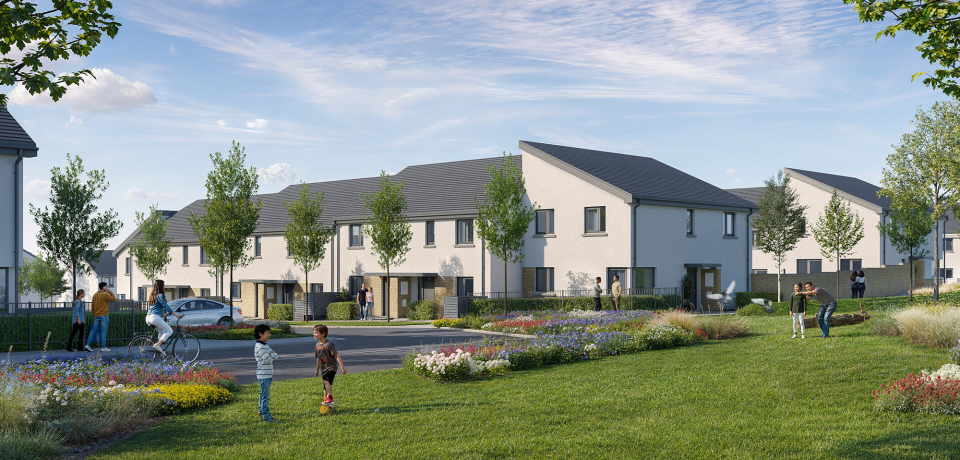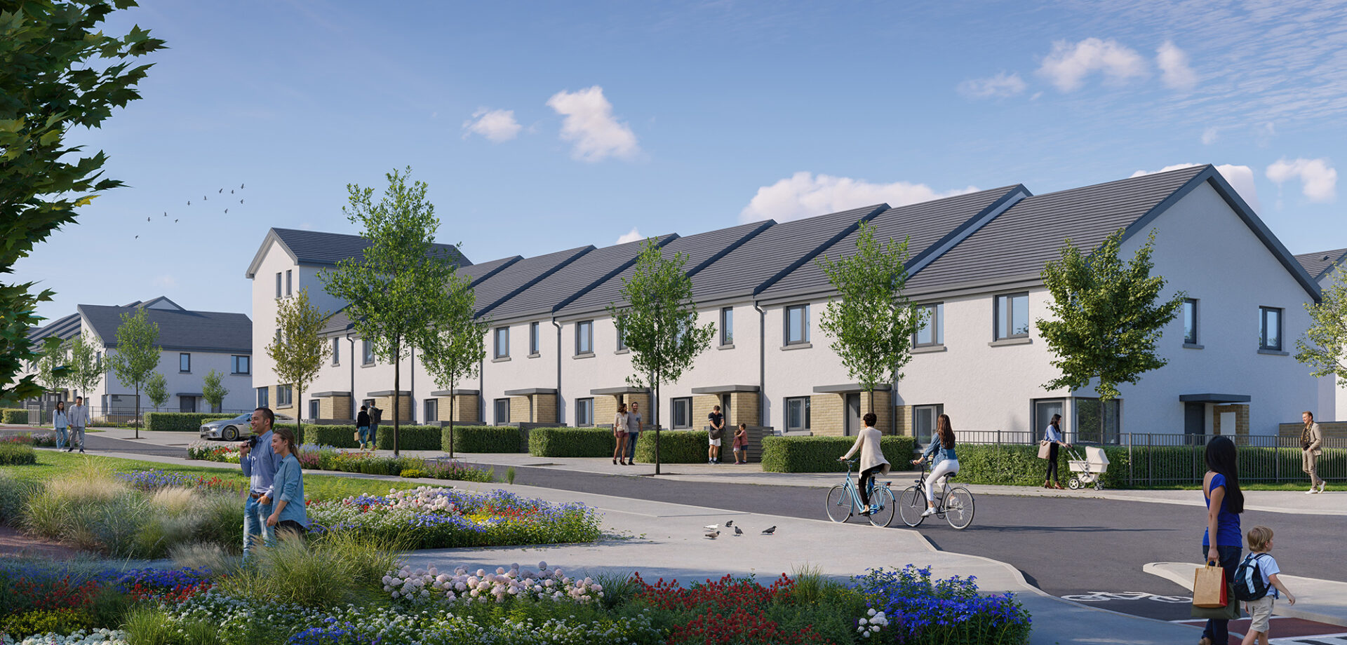 Environmental sustainability is central to the design, with a strong focus on biodiversity, tree and shrub planting, and pedestrian-friendly streets designed as ‘home-zones’. Adopting the principles of a 10-minute town, every home will be within walking distance of shops, services, and amenities.